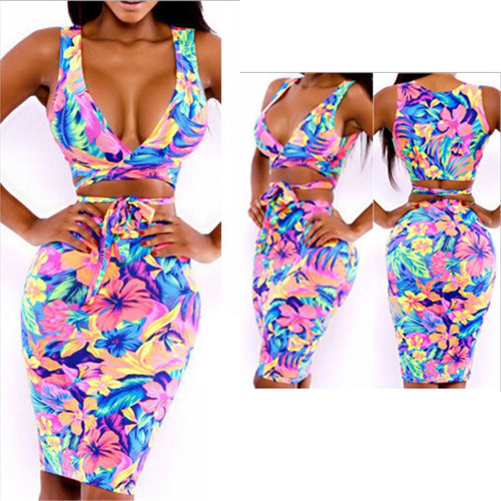 2016 sommer Damen Frauen Zweiteilige Ernte Top und Rock Set Sexy Verband Bodycon Kleid