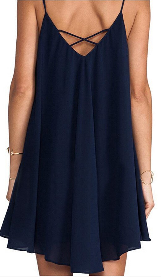 2016 sommer Heißen Frauen Sexy Kleider Party Nachtclub-kleid V-ausschnitt Lose Rüschen Chiffon Spaghetti Strap Kleid Marineblau CH852