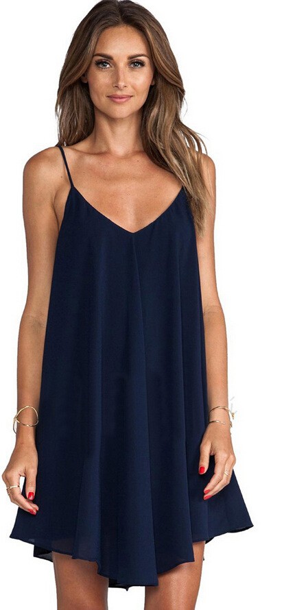 2016 sommer Heien Frauen Sexy Kleider Party Nachtclub-kleid V-ausschnitt Lose Rschen Chiffon Spaghetti Strap Kleid Marineblau CH852