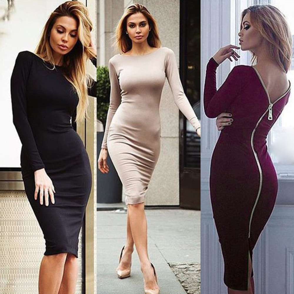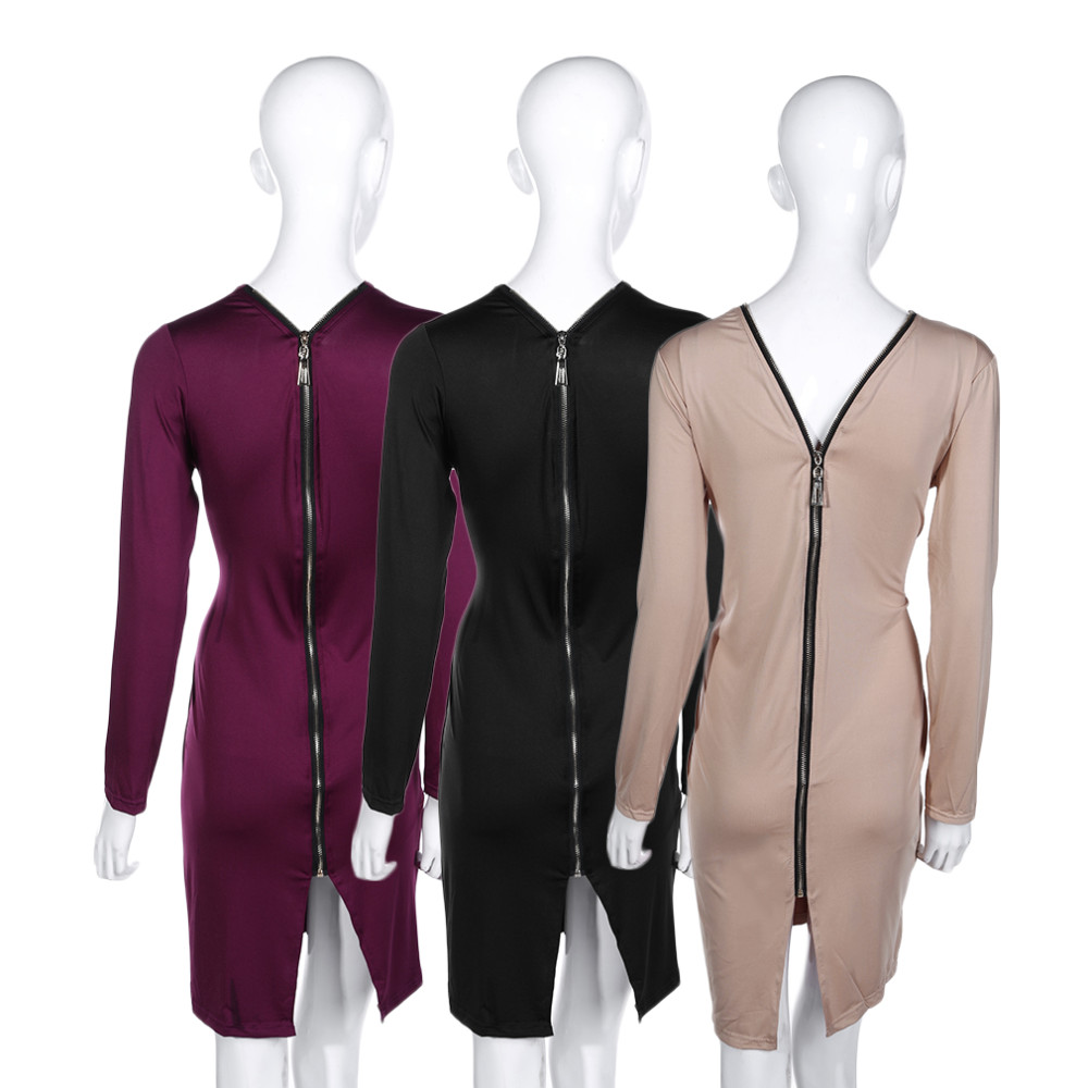 Frauen Sexy Bodycon Langarm Zurck Gestrickt Ausgesetzt Zipper Kleid SL Gre Heier Verkauf