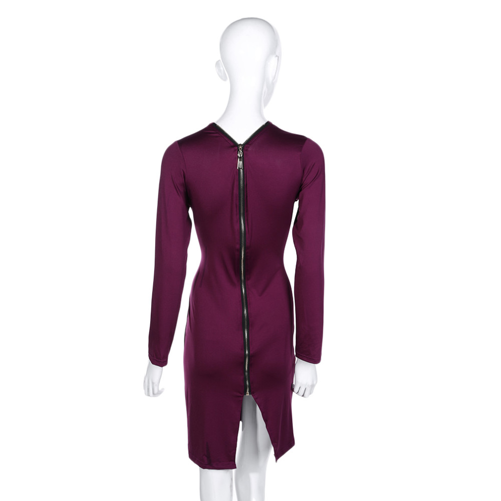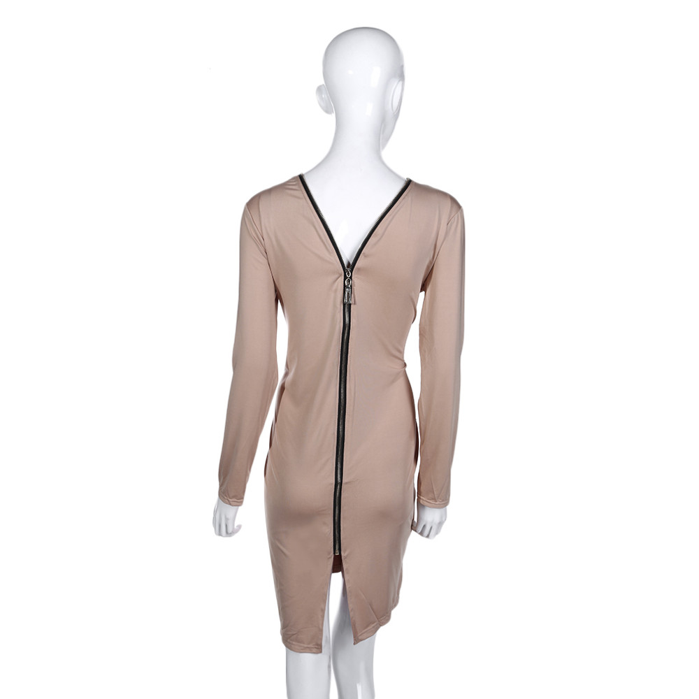 1 x Frauen Sexy Bodycon Langarm Zurück Gestrickt Ausgesetzt Zipper Kleid