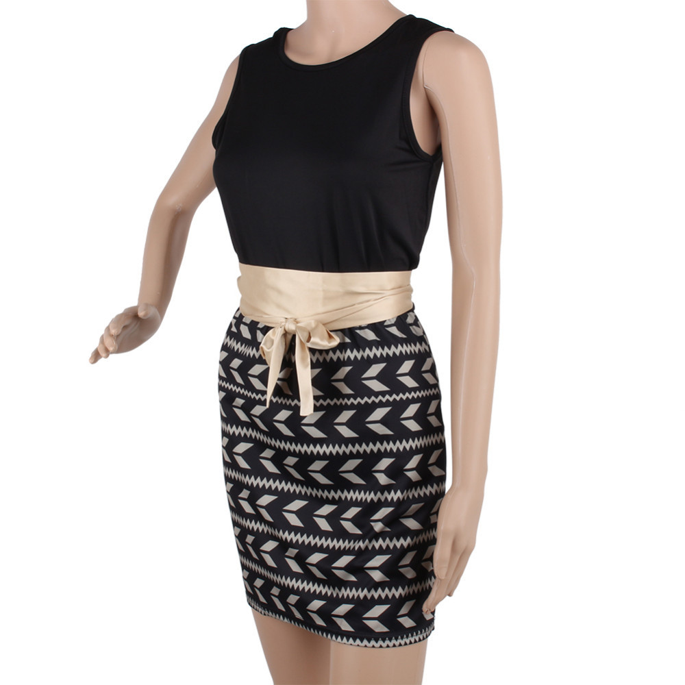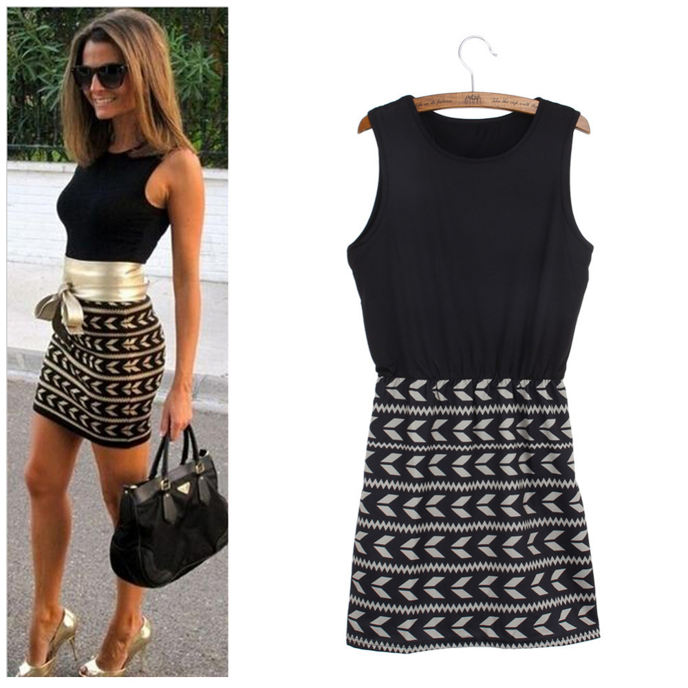 Frauen Sommer Patchworkdruck Minikleid 2016 Neue Europische Stil Bodycon Sleeveless O-ansatz Splice Clubwear Feminina Vestido