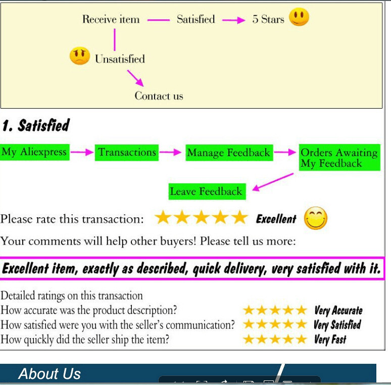 4) bitte nicht negatives oder Nullrückgespräch, wenn Sie nicht in 30 Tagen empfangen, weil wir haben die Verschiffenzeit wiederholt erwähnt. Und wir garantieren, um Ihnen zufrieden Auflösung.