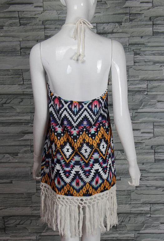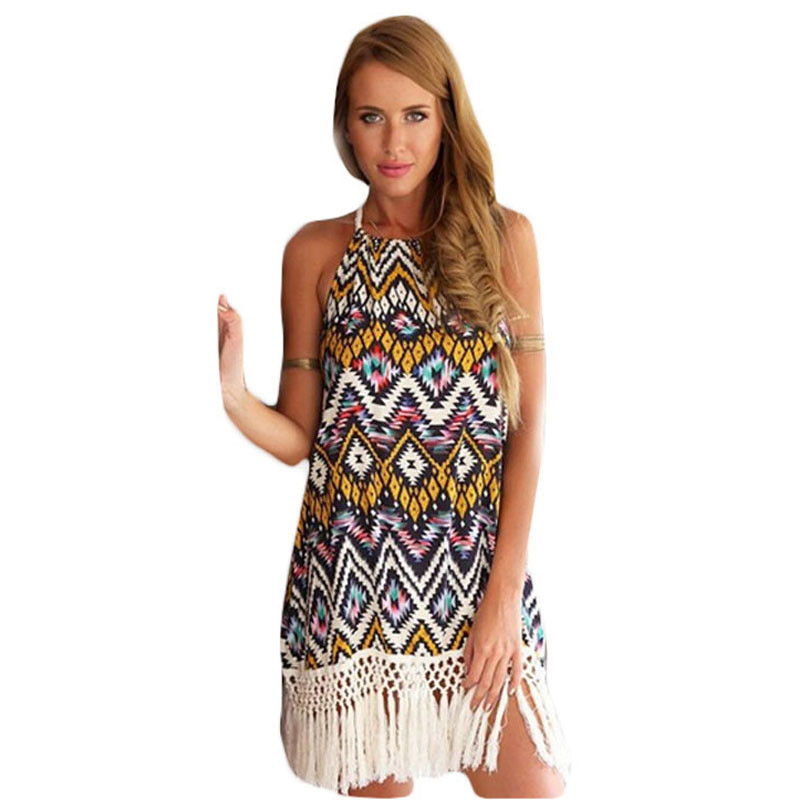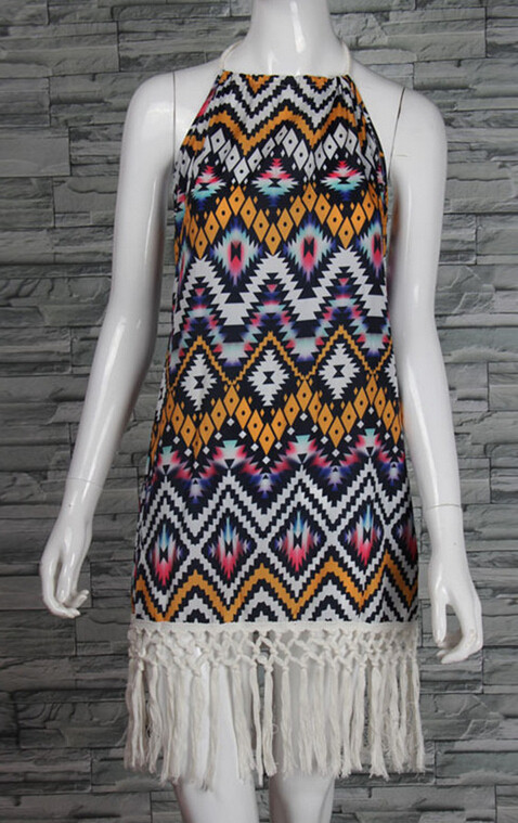 Sommerkleid Frauen Druck Kleidung 2015 Heier Verkauf Europischen und Amerikanischen Stil Sexy Kleid Halter-Backless Quaste Vestido C146