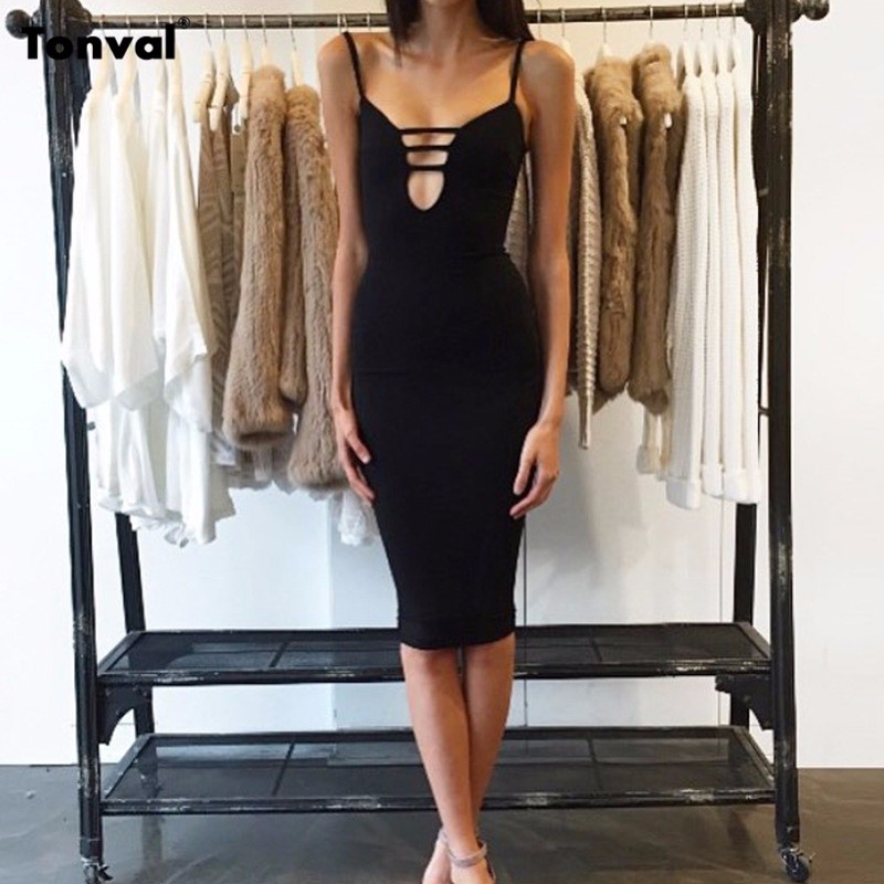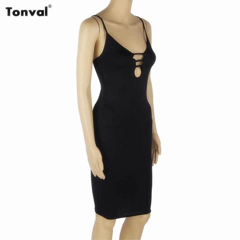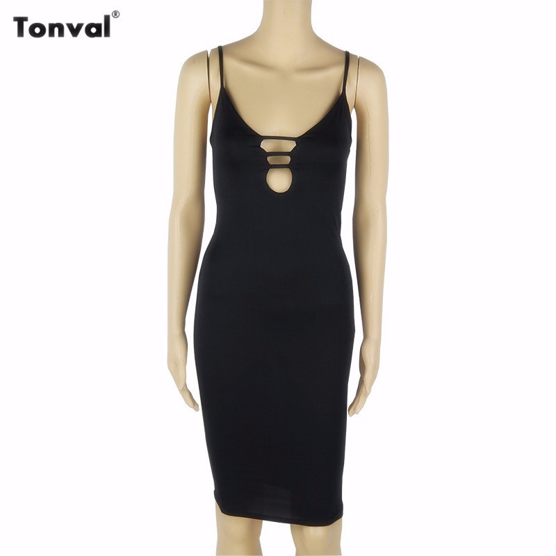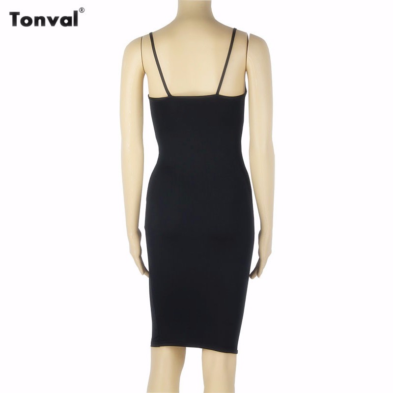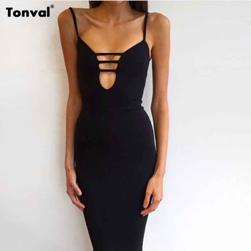 Tonval Frauen Sexy Club Kleid Sommer Stretch Vestidos Slip Kleid Schwarz Bodycon Tiefem V-ausschnitt Clubwear Party Kleider