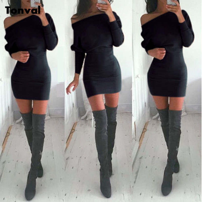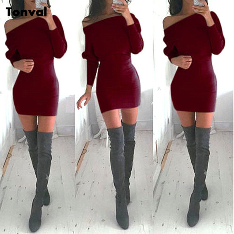 Tonval Sexy Schulter Kleid Women Casual-flgelhlse Kleid Herbst Winter Langarm Bodycon Sexy Kleider