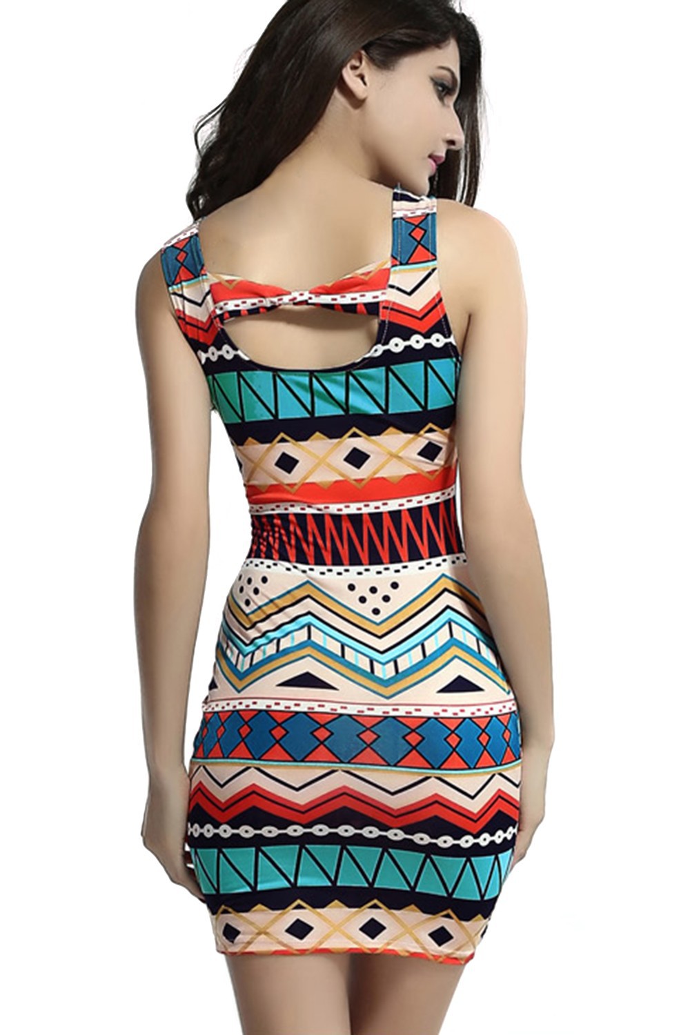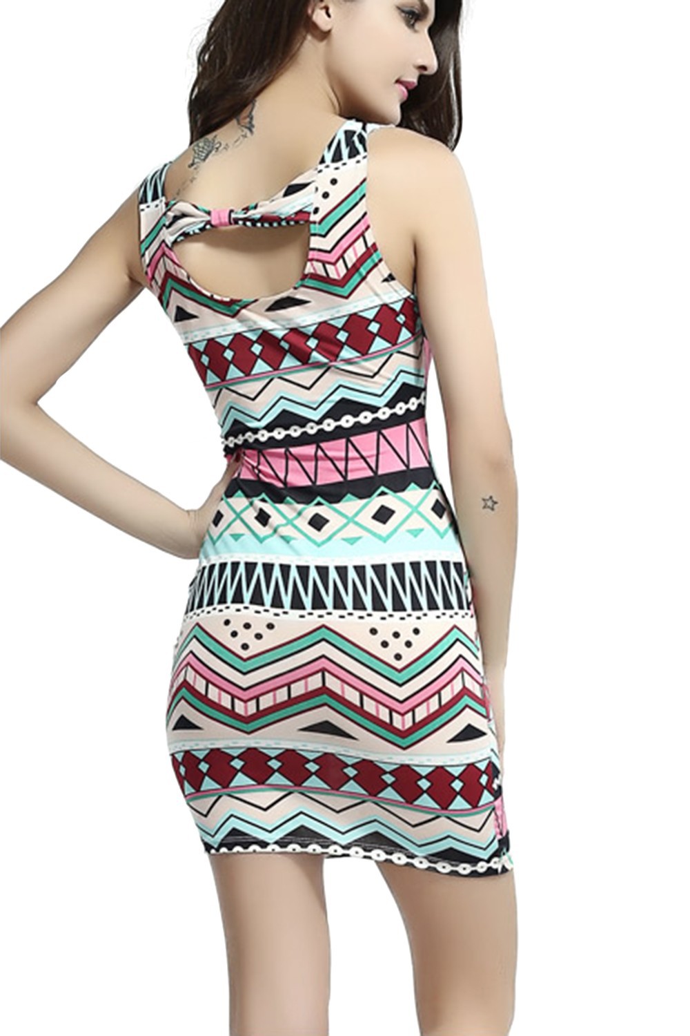2015 neue Mode Dünne Oansatz Frauen Kleid Vestido De Festa Sleeveless Reizvolle Geometrische Minikleid