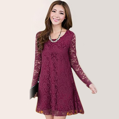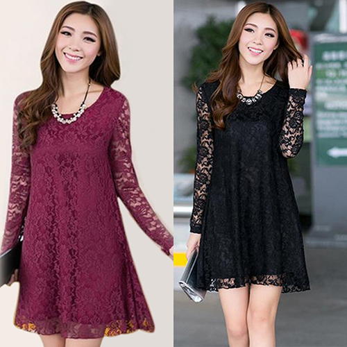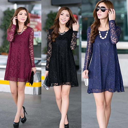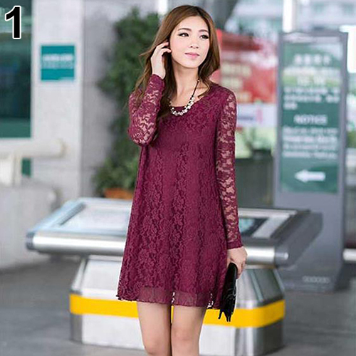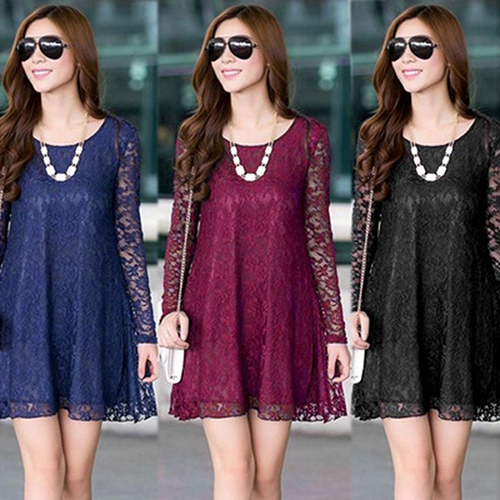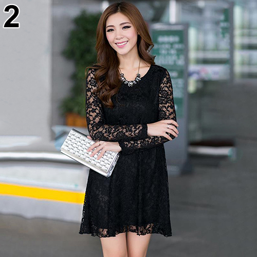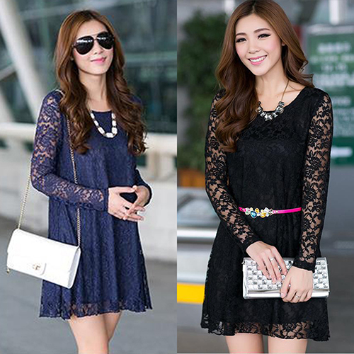 2016 neue frauen Sexy Bltenspitze Kleid Lose Lange Hohle Hlse O-ansatz Kleid