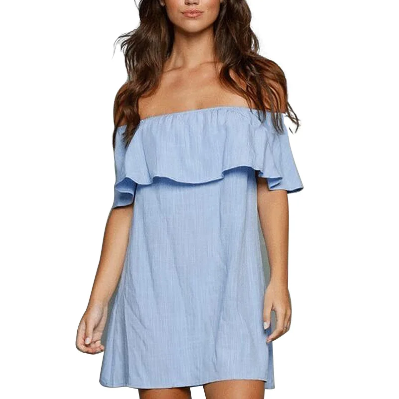 Elegante Sommer Lose Frauen Minikleid 2016 Fashion Gekruselte Sexy Schulterfrei Trgerloses Kleid-boot-ausschnitt Kleid Schmetterlingshlse