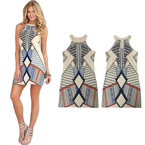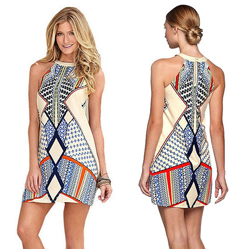 Frauen Sexy Sommer Minikleid Beilufiges Sleeveless Blumen Abend Party Slim Fit Kleider