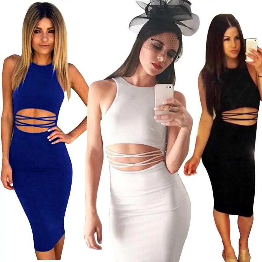 Neue Design Frauen Sexy Bandage Sleeveless Bauchfreies Abendgesellschaft Enges Kleid Jun17