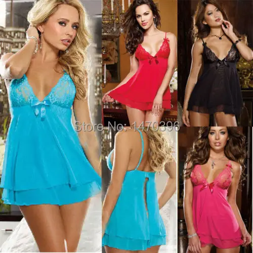 Sexy Dessous Nachtwsche Unterwsche Frauen Nachtwsche Babydoll + G String Spitze Kleid