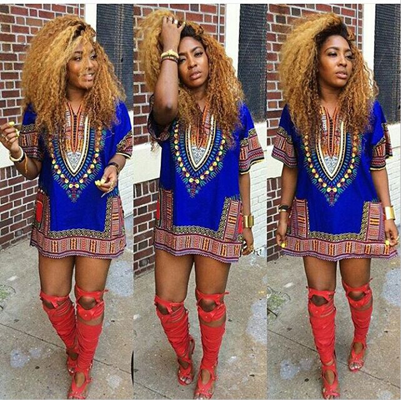 2016 5 Farbe Sommer Kleid Sexy Mini Afrikanische Tranditional Druck Dashiki Kleid Damen Kleider Volkskunst Afrikanische Frauen Kleid Kleidung