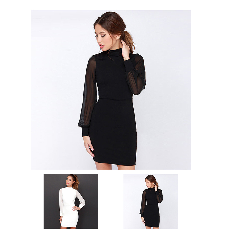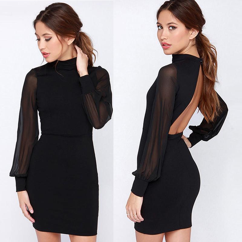 Heier verkauf Sexy Frauen Langarm Backless Chiffon Langarm Minikleid Partyabend Kurze Kleider
