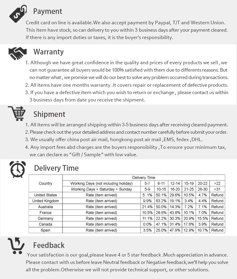 5. wenn Sie möchten kaufen große Menge, hinterlassen Sie bitte einen Nachricht an mich, wir geben Ihnen besten Preis!