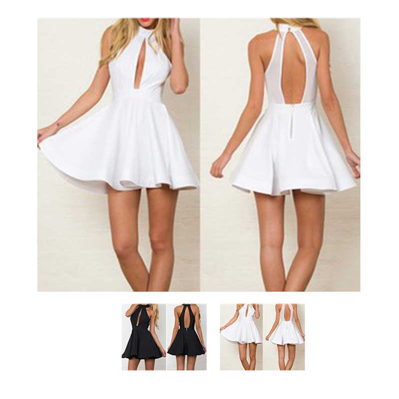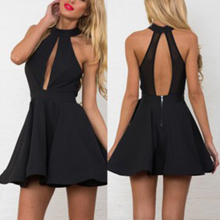 Verkaufsfrderung Reizvolle Backless frauen Kleider Quer Brust Taille Reiverschluss Nhte Neckholder Kleid
