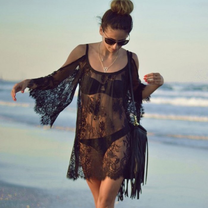 Frauen Strandkleid Sexy Sheer Bltenspitze Bestickte Hkeln Sommer Kleider Hippie Boho vestidos Mini Kleid