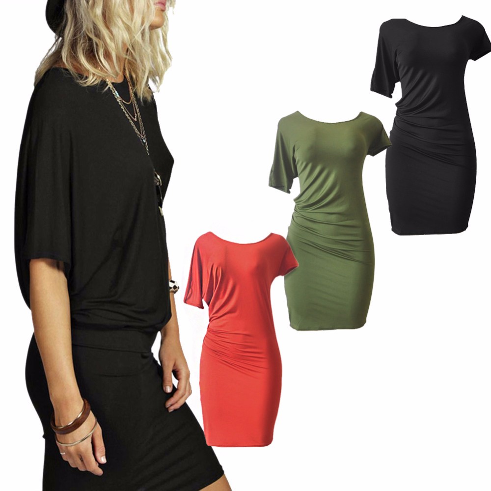 Sexy frauen Bodycon Casual Kurzarm Abend Partei Knielanges Kleid